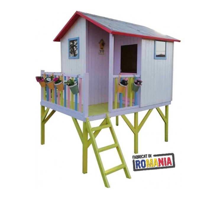 Casuta din lemn pe piloni pentru copii Marte - vopsita