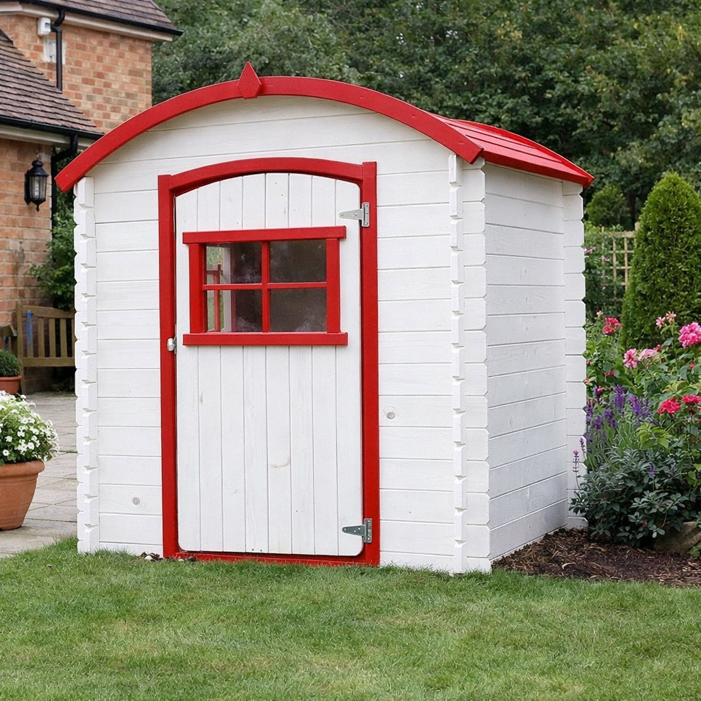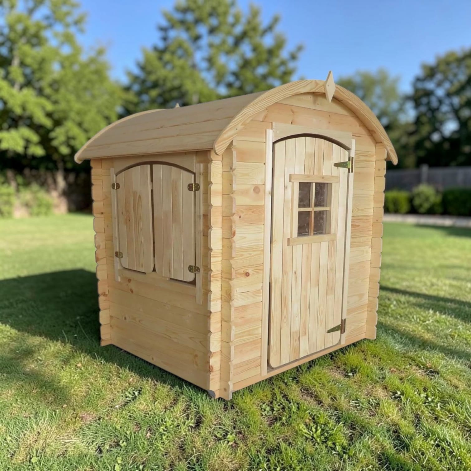 O căsuță de joacă robustă, preasamblată.