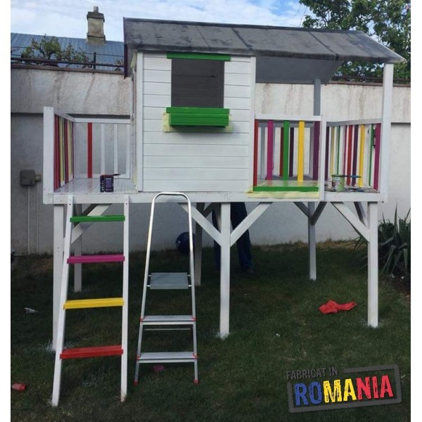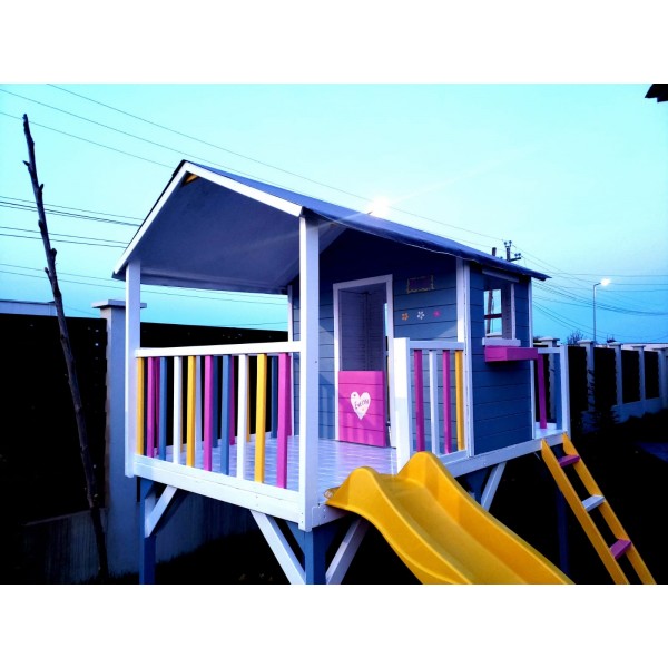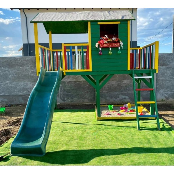 Casuta de joaca "Pluto pe piloni" este un punct de plecare solid pentru amenajarea unui spatiu de joaca exterior complet, in curtea sau gradina casei. Constructia inaltata pe piloni ofera copiilor libertate de miscare, joaca activa si un spatiu propriu bine delimitat, sigur si stabil.