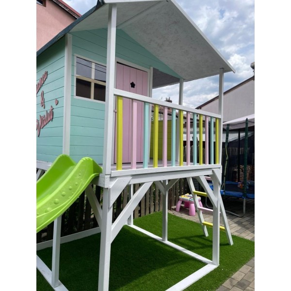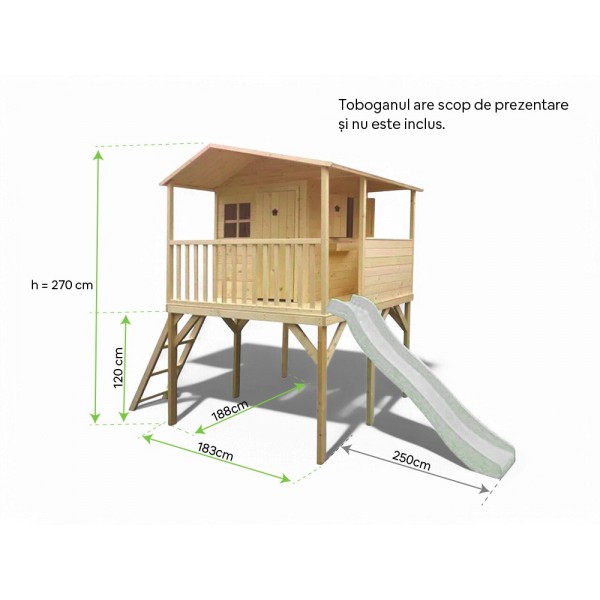 Casuta pentru copii "Saturn pe piloni" este o solutie completa pentru amenajarea unui spatiu de joaca exterior activ si sigur. Structura inaltata ofera copiilor mai multa libertate de miscare si creeaza un cadru ideal atat pentru joaca dinamica, cat si pentru activitati linistite.
