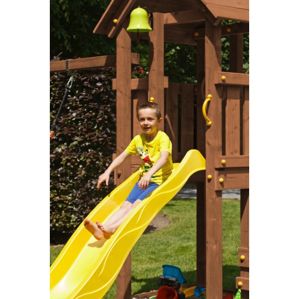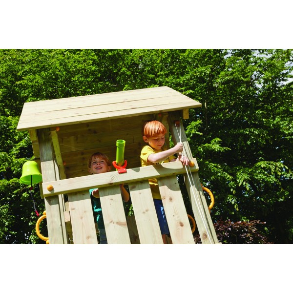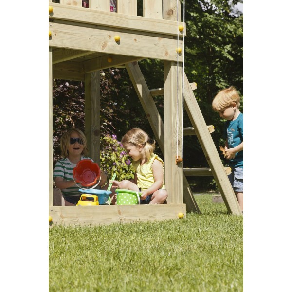 Turnul de joaca este conceput pentru acces usor si joaca activa, fiind potrivit inclusiv pentru copiii cu varste mai fragede. Rampa de intrare inclinata si cele doua platforme de legatura creeaza o experienta de joaca de tip alpinism, care stimuleaza miscarea, echilibrul si coordonarea, intr-un mod sigur si progresiv.